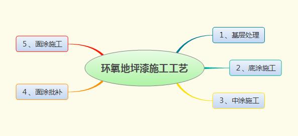 環氧色漆及固化劑混合均勻后,鏝涂、刷涂、輥涂或噴涂使流平獲平整均勻表層。