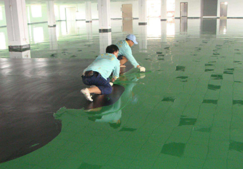 材料配比時按標準比例調配,按順時針和逆時針兩個方向把材料充分攪拌均勻后,靜放3分鐘消泡后再施工。采用滾涂方法在處理好的基礎地面滾涂一至兩道底漆材料,每道間隔8小時,完成實干后再涂第二道。環氧底涂層主要是銜接作用,把基礎地面和環氧涂層粘合在一起,避免脫層。