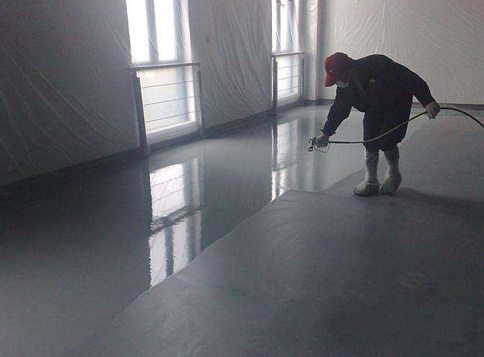 用刮刀將防靜電底漆滿刮地坪;稍干后吸油量較大部分會有泛白現象,應補涂防靜電底漆。