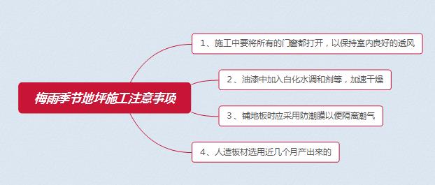 在雨季時,因為氣壓比較低,很多有害物質會殘留在室內或裝飾裝修材料之中,不輕易揮發。陰雨天時不僅空氣濕潤,而且施工場地空氣活動也比較緩慢,因此施工中要將所有的門窗都打開,以保持室內良好的透風。這樣不僅有利于施工職員的身體健康,而且有助于地面等的盡早干燥。